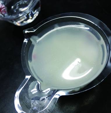 如果样品中掺有石蜡,液面上会出现细微的油珠,随着温度的降低和时间的延长液体石蜡的油珠聚集加大,固体石蜡的油珠会结成白色片状物浮于液面上。